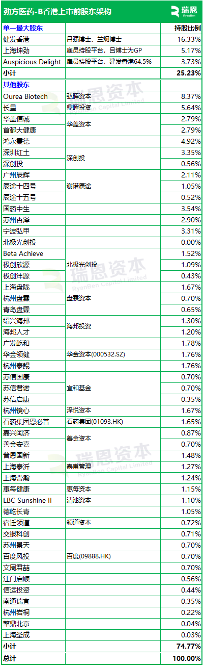 其他投资者包括:弘晖资本、鼎晖投资、亚投资本、宁波弘甲、国药中生、深创投、华盖资本、谢诺辰途、北极光创投、盘霖资本、海邦投资、中南创投、华金资本(000532.SZ)、杭州泰鲲、宜和私募基金、泽悦资本、石药集团(01093.HK)、善金资本、上海誉瀚、普恩国新、泰甫管理、惠每资本、农银国际、清池资本、德屹长青、